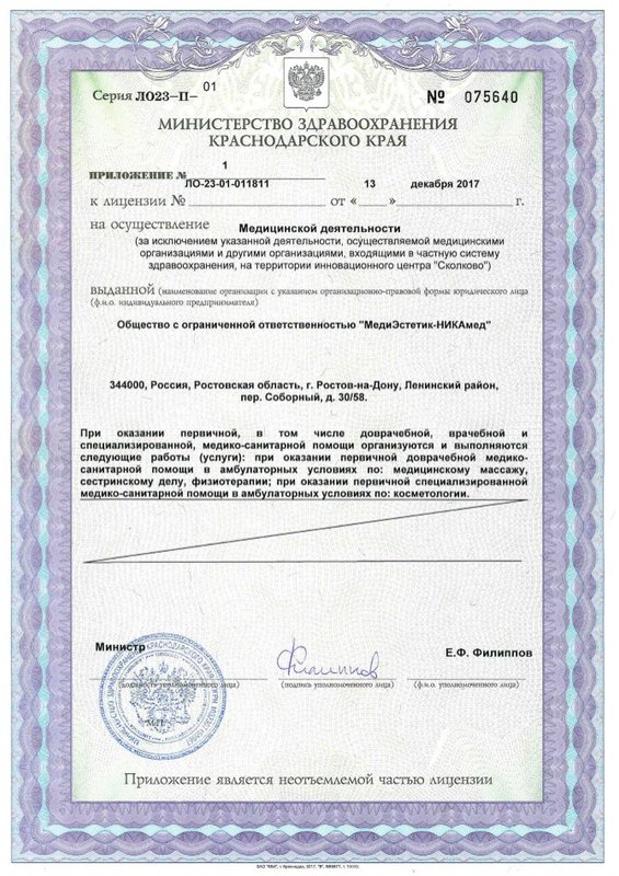 2015 Медицинский стоматологический институт, г. Москва, повышение квалификации по специальности «Пластическая хирургия»